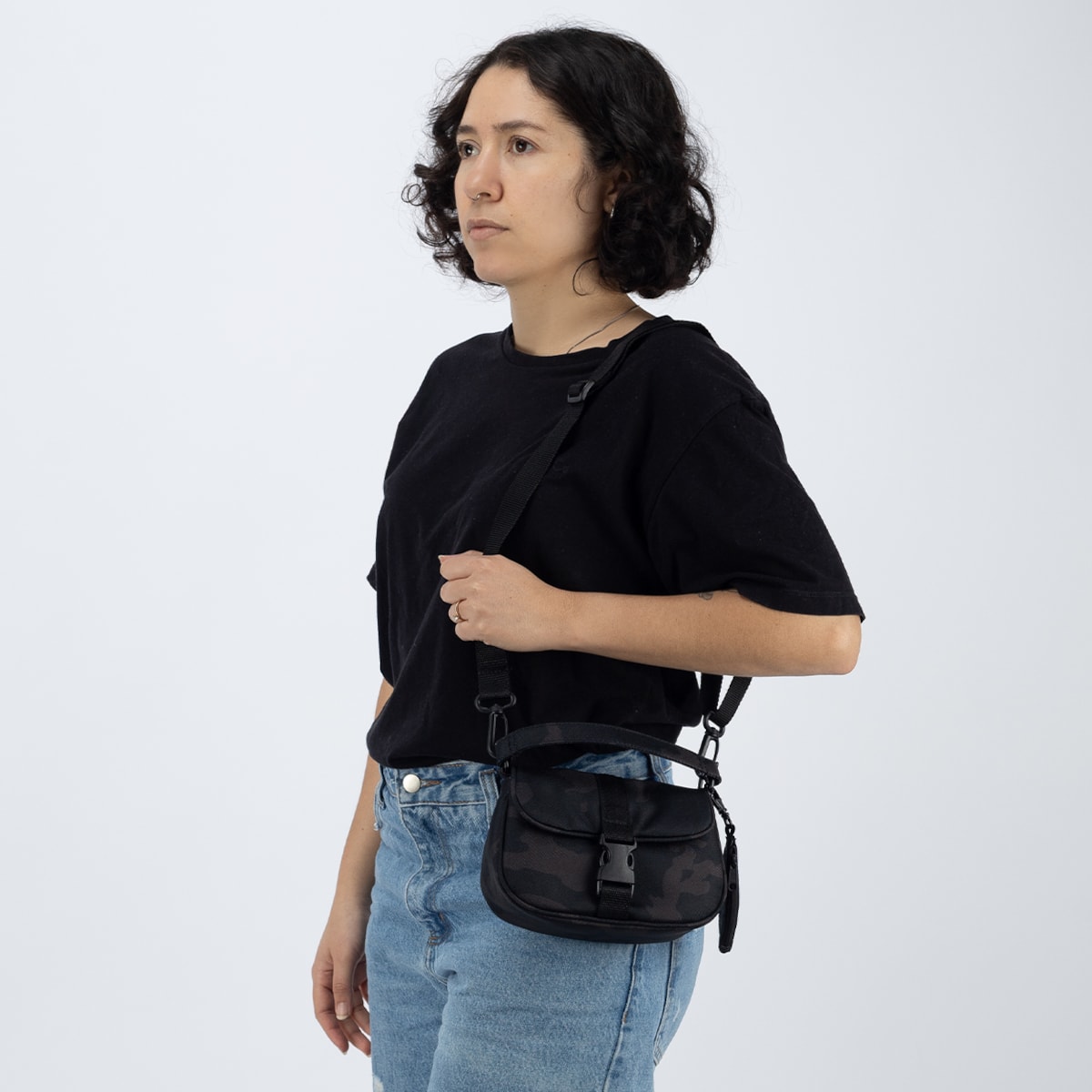 Camuflada. Acompanha chaveiro de mini porta-moedas em formato do logo