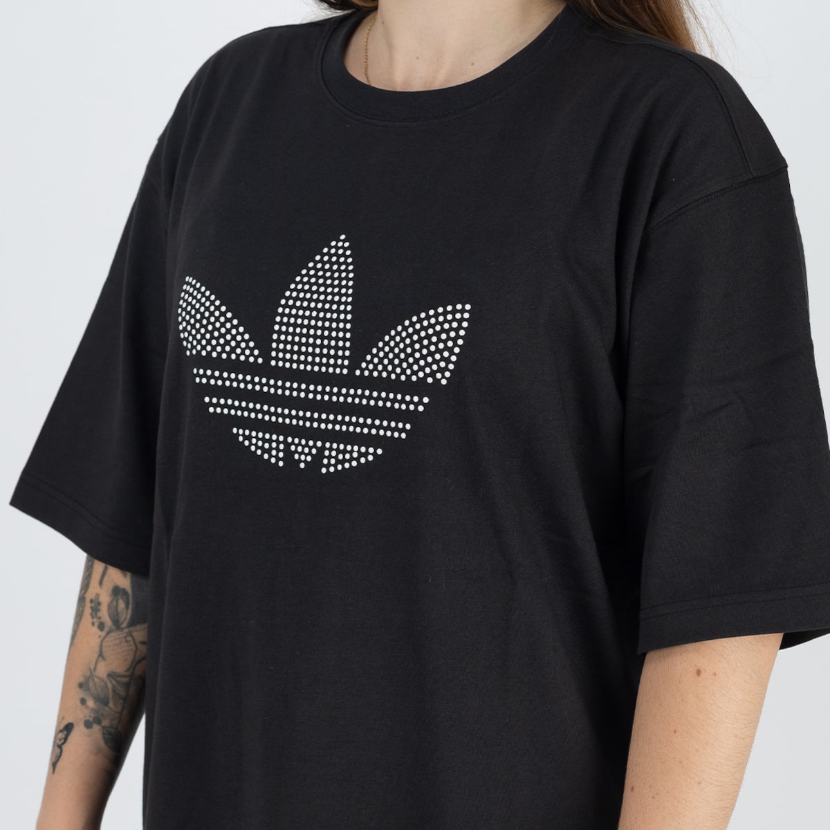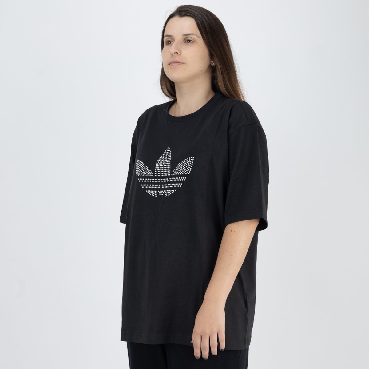 logo Trefoil em lantejoulas peroladas, adicionando brilho sutil e reforçando a identidade adidas Originals.