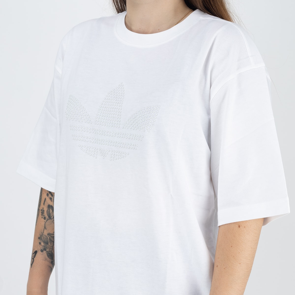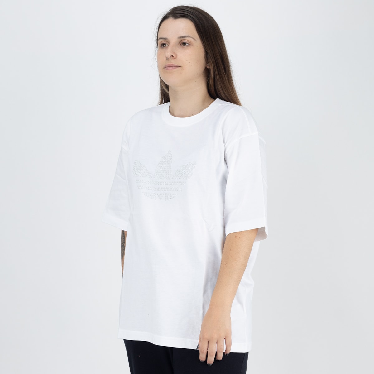 Sobre: Confeccionada em algodão macio de alta qualidade, oferece sensação suave ao vestir e respirabilidade. Seu design ganha destaque com o logo Trefoil em lantejoulas peroladas, adicionando brilho sutil e reforçando a identidade adidas Originals.