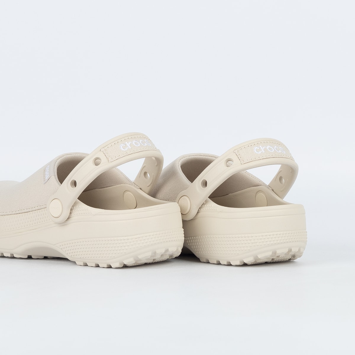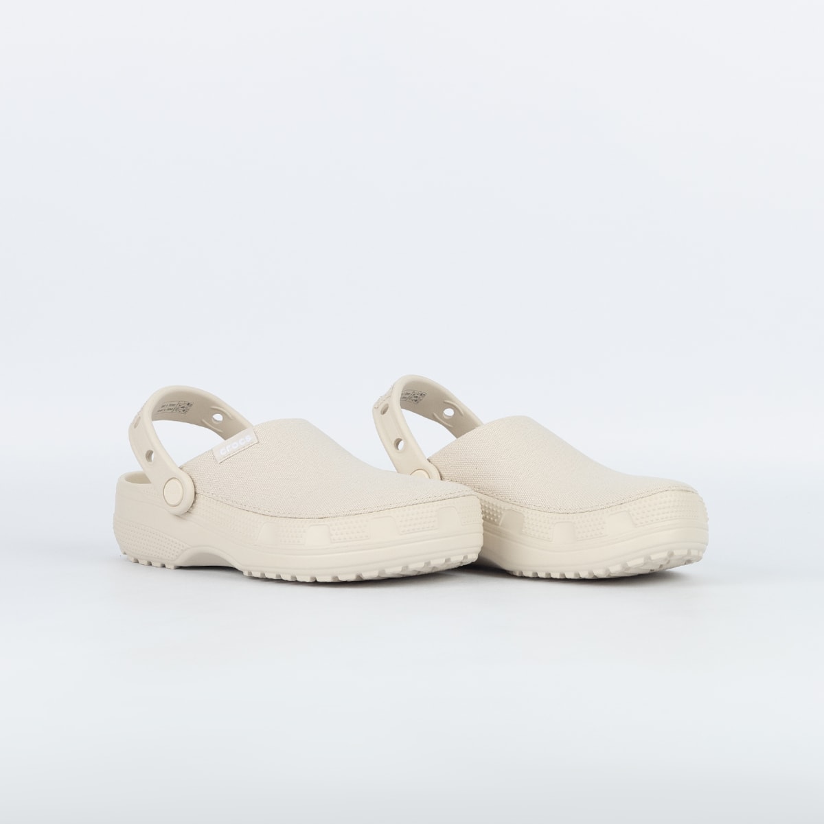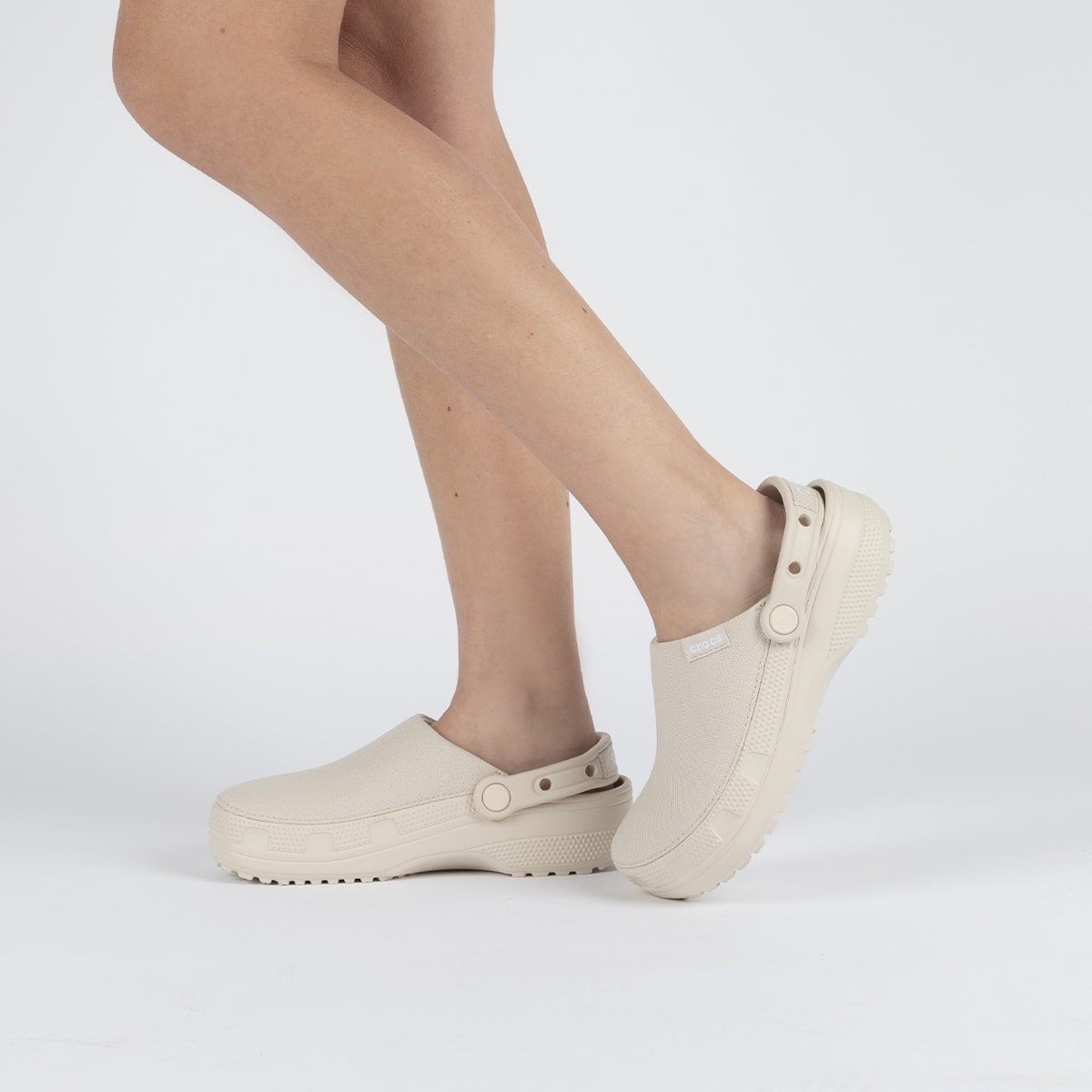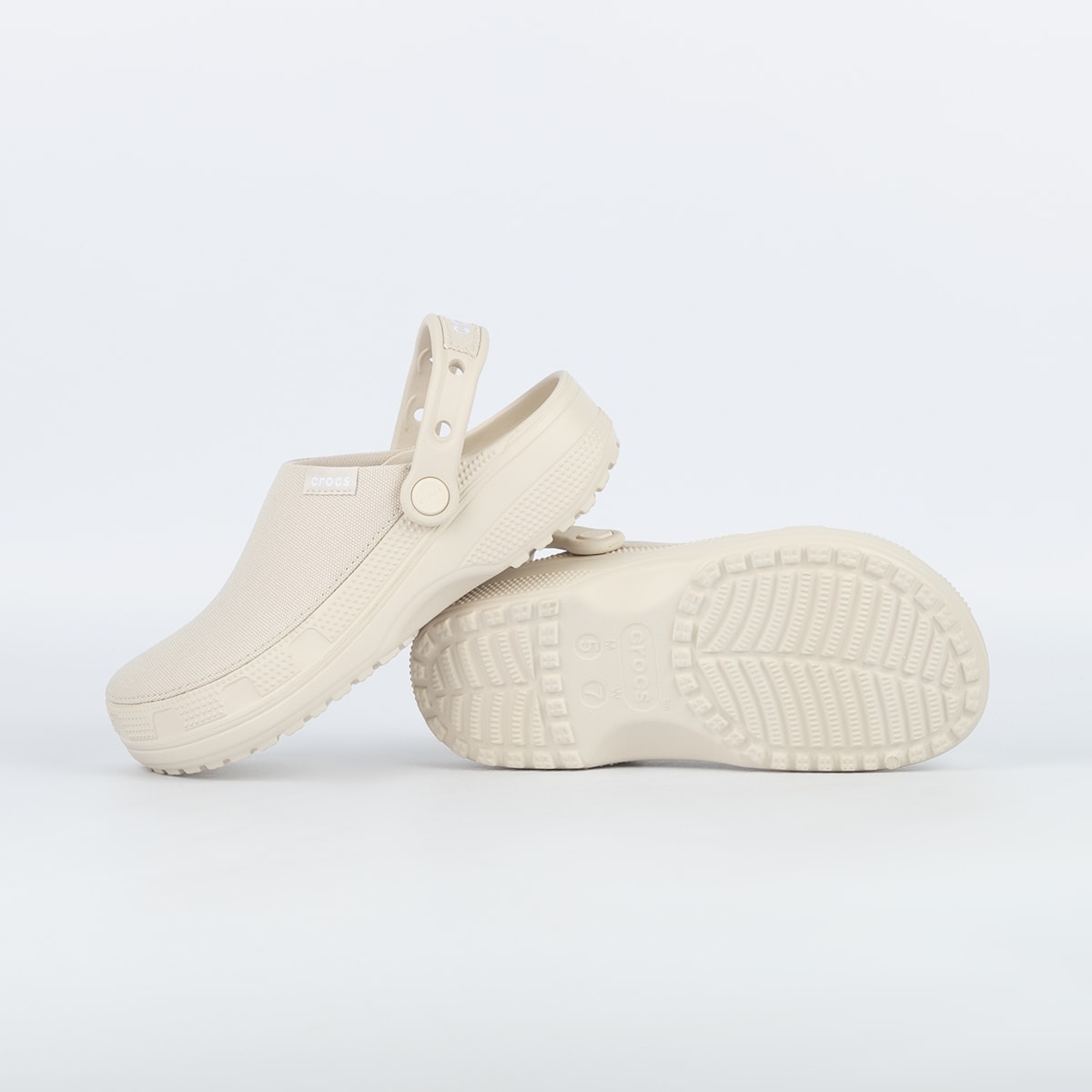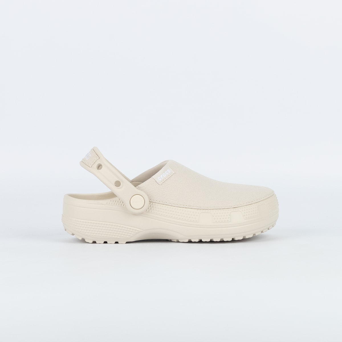 Sobre: O Classic Crocs™ combina praticidade e conforto em um design atemporal chega em uma releitura com um toque extra de estilo. A Crafted Clog cabedal em lona lavada macia, 100% têxtil, que adiciona uma estética elegante e jovial ao design, sem abrir mão do conforto. O solado Croslite™ (resina de célula fechada) garante leveza, durabilidade e suporte para o dia todo, enquanto a tira giratória no calcanhar oferece ajuste seguro e versatilidade no uso. Os furos para Jibbitz™ na tira permitem personalizar a clog e expressar sua personalidade em cada detalhe.