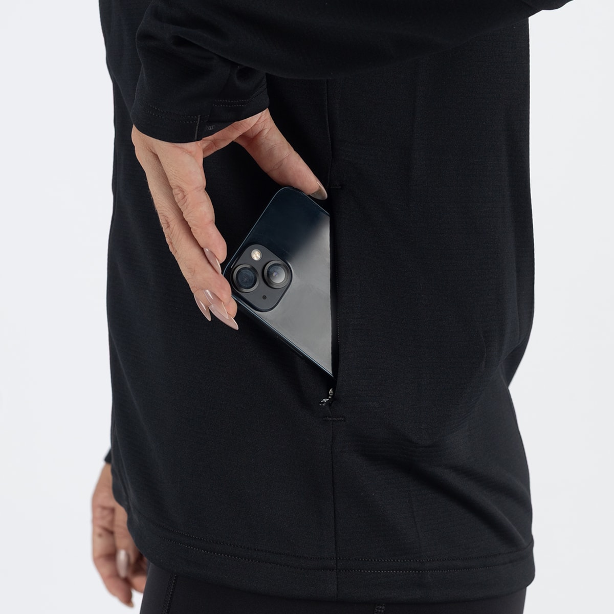 tecido reciclado de superfície multidimensional, ela proporciona excelente absorção e controle de umidade, mantendo o corpo seco e confortável mesmo em condições variáveis. O design conta com um