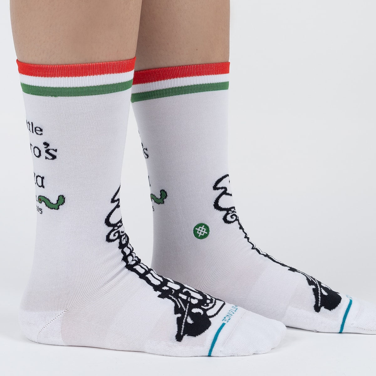 Sobre: Para celebrar a época mais encantadora do ano a Stance apresenta sua colaboração com o filme “Esqueceram de Mim (Home Alone)”, trazendo toda a magia e nostalgia do Natal. O filme conhecido mundialmente, acompanha Kevin McCallister, um menino de oito anos cheio de imaginação que acaba sendo esquecido em casa pela família durante as férias de Natal. Sozinho, ele transforma o caos em aventura e usa sua criatividade para proteger a casa de dois ladrões desajeitados. Com muitas armadilhas engenhosas e muito humor, o filme mistura comédia, espírito natalino e a descoberta da independência. A meia possui estampa que remete à "Little Neros Pizza", pizzaria fictícia que aparece no filme, além de que o modelo une conforto extremo, toque suave e durabilidade incomparável.