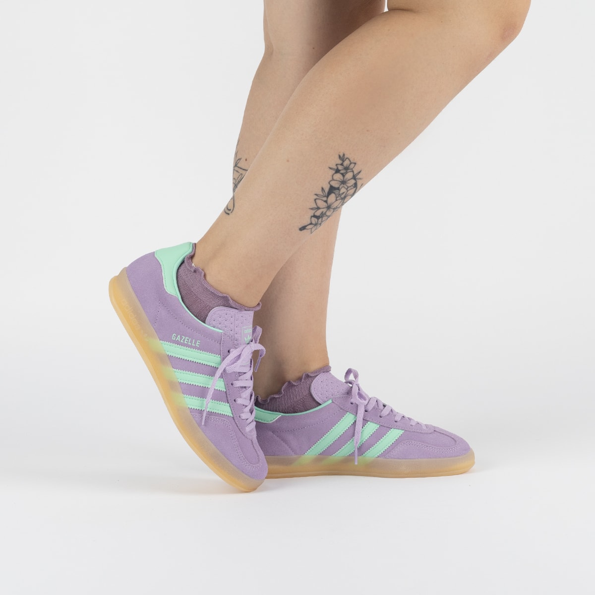 adidas Gazelle começou sua trajetória como um tênis de treino indoor, sendo o primeiro tênis da adidas feito em camurça, fator que esteticamente, deu ao modelo uma aparência mais sofisticada e posteriormente, facilitou sua transição para a moda casual. Seu design minimalista se destacou pela simplicidade funcional e estilo. Na década de 80 e 90, o