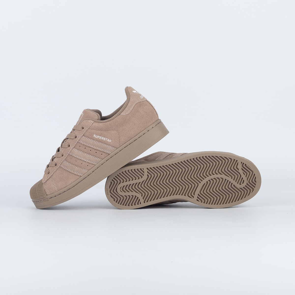 Superstar II traz uma silhueta mais robusta, com colarinho e língua acolchoados para maior conforto no dia a dia. Mantém a icônica