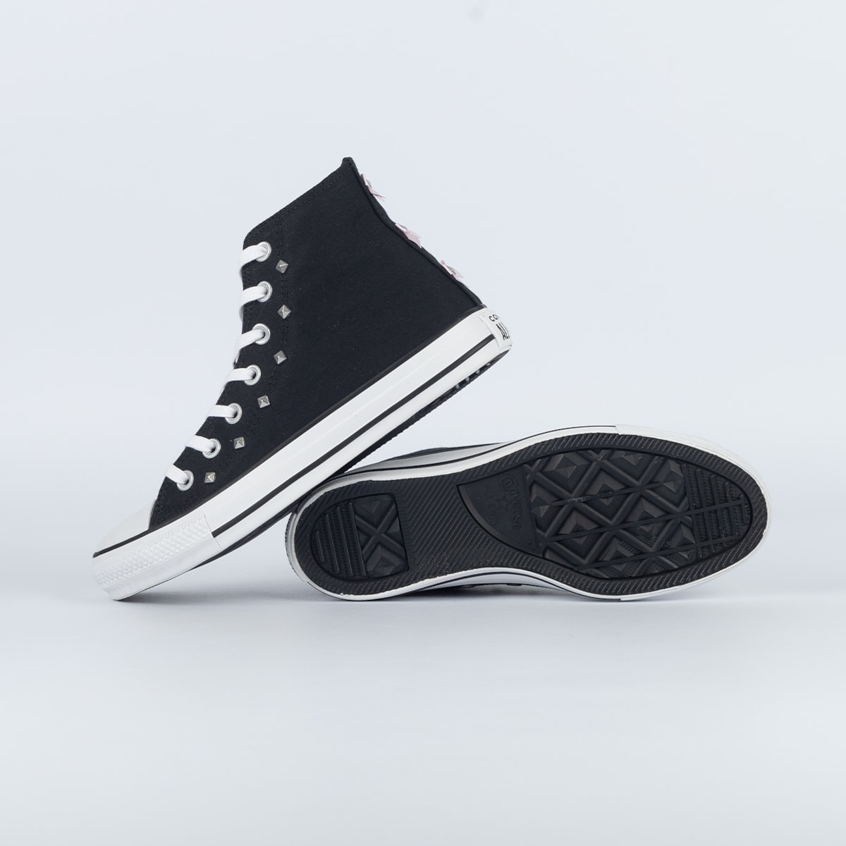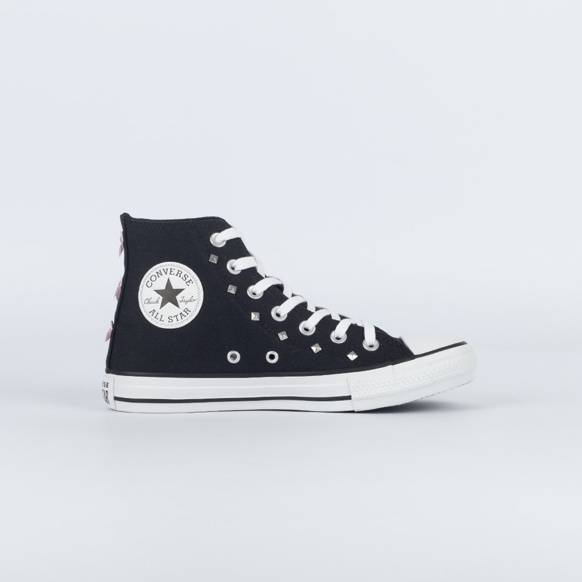 Tênis Converse Chuck Taylor All Star Hi Bow Studded Preto Creme Rosa CT32120001