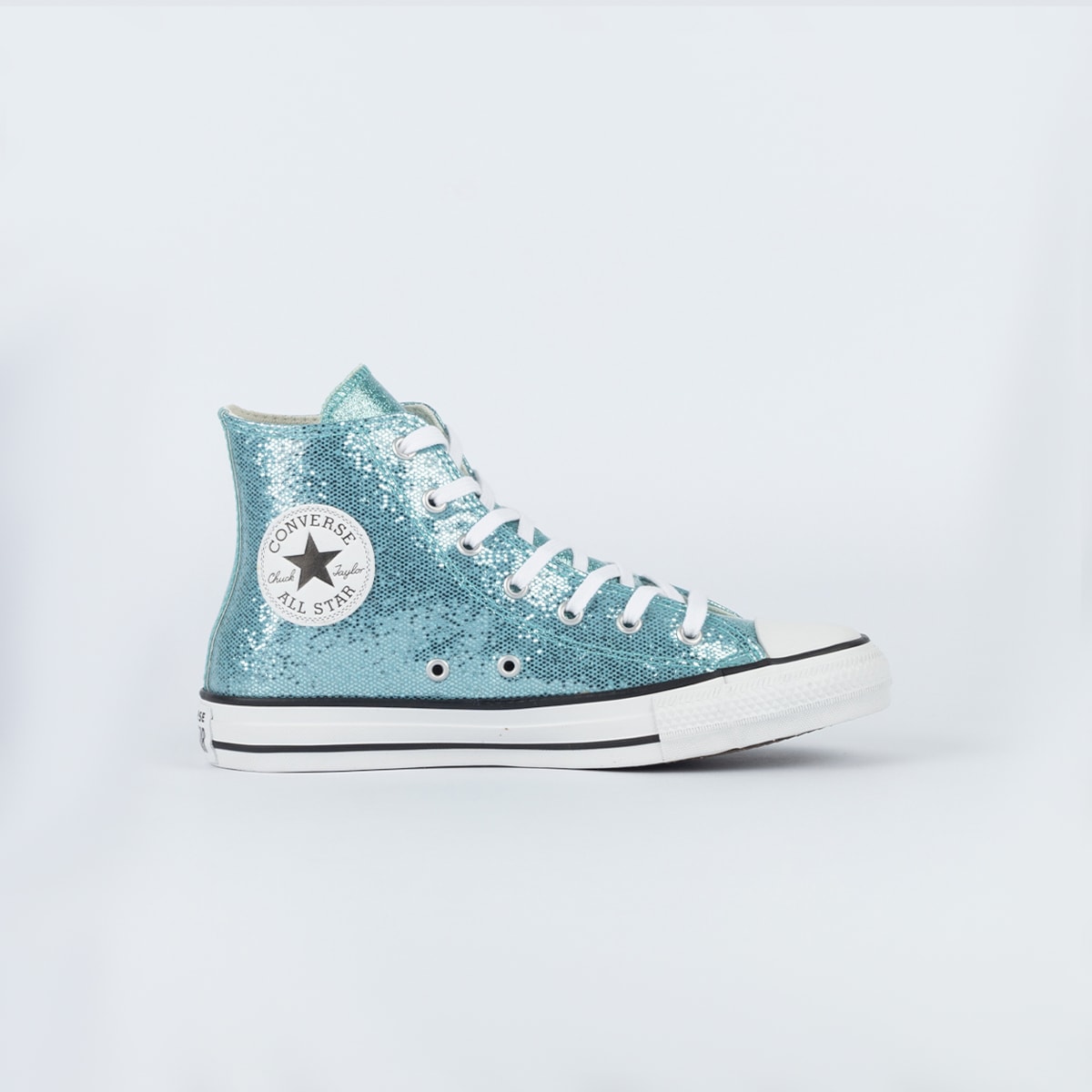 Tênis Converse Chuck Taylor All Star Hi Shine Agua Marinha Branco Preto CK14460001
