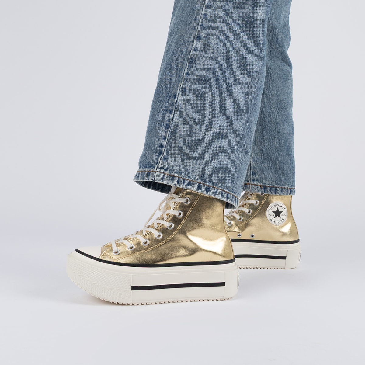 Tênis Converse Chuck Taylor All Star Lift Hi Double Stack Shine Metallic Light Gold A15164C