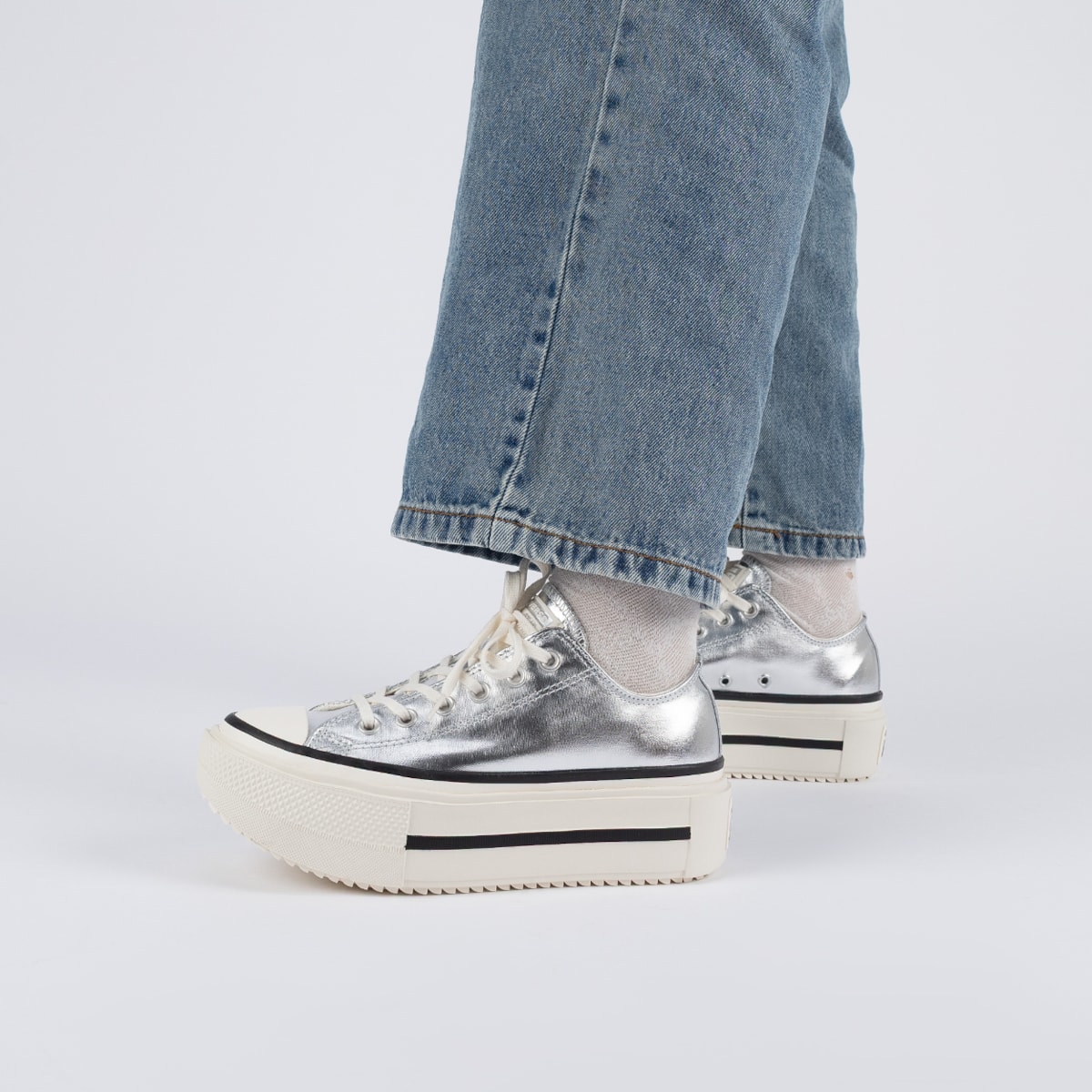 Tênis Converse Chuck Taylor All Star Lift Ox Double Stack Shine Silver Egret A16406C