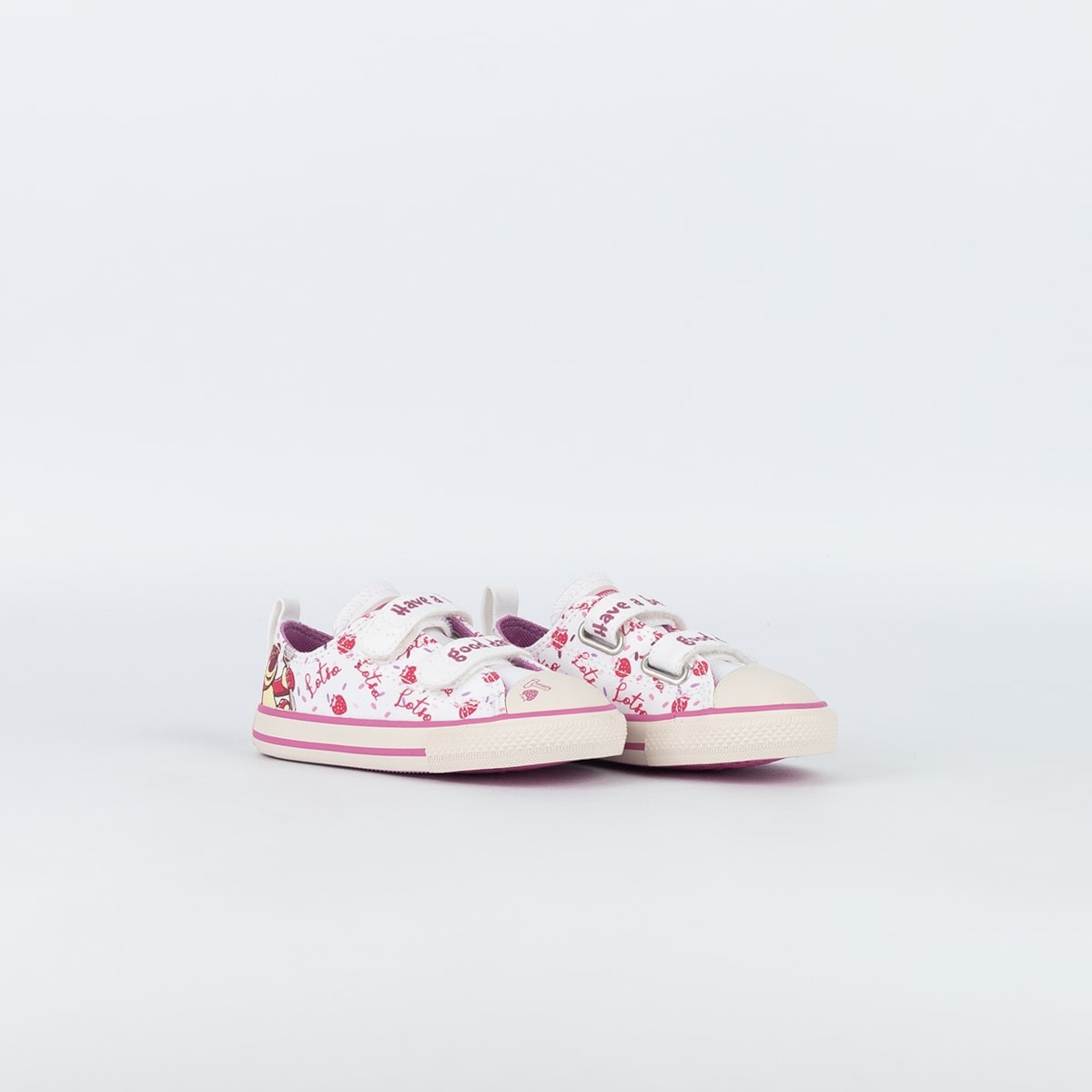 Tênis Converse Kids Chuck Taylor All Star 2V Ox Disney Urso Lotso Branco Orquídea Fosco Marfim CK15380001