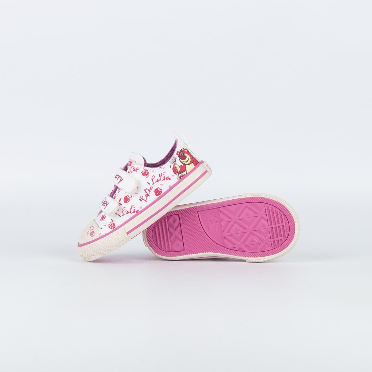 Sobre: O universo do filme Toy Story salta das telas direto para os pés com este Converse especial inspirado no urso Lotso. A silhueta clássica ganha vida com ilustrações de um dos personagens mais marcantes da saga. Cada elemento traduz a atmosfera divertida e acolhedora do filme, onde amizade, imaginação e aventura sempre caminham juntos. O fechamento em velcro adiciona praticidade à rotina enquanto a tradicional tag traseira aparece aplicada no calcanhar e o solado de borracha vulcanizada garante mais aderência a cada passo.