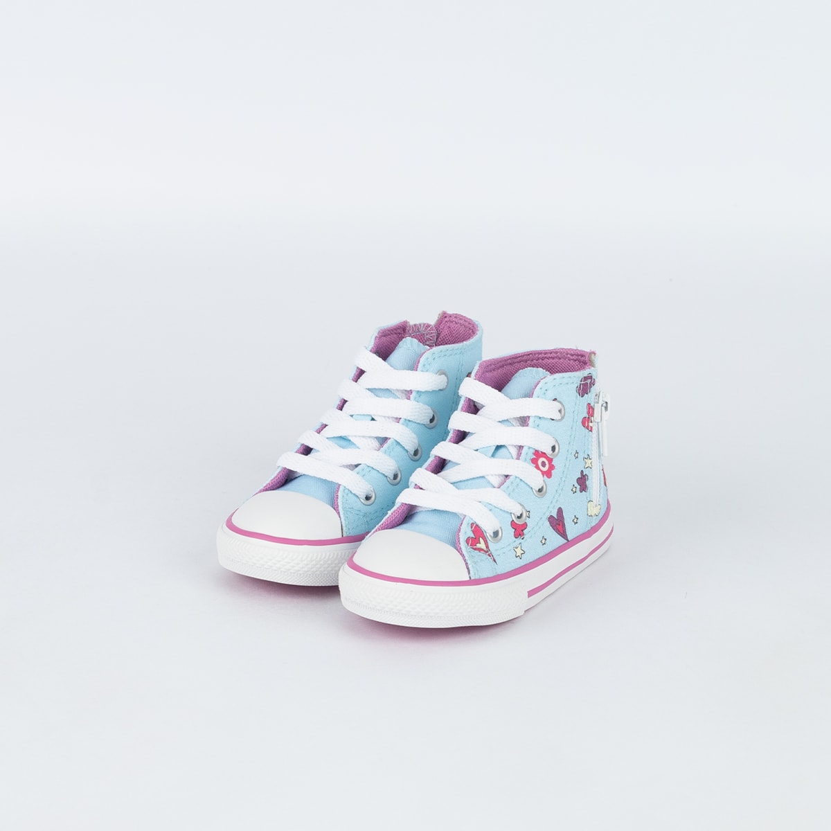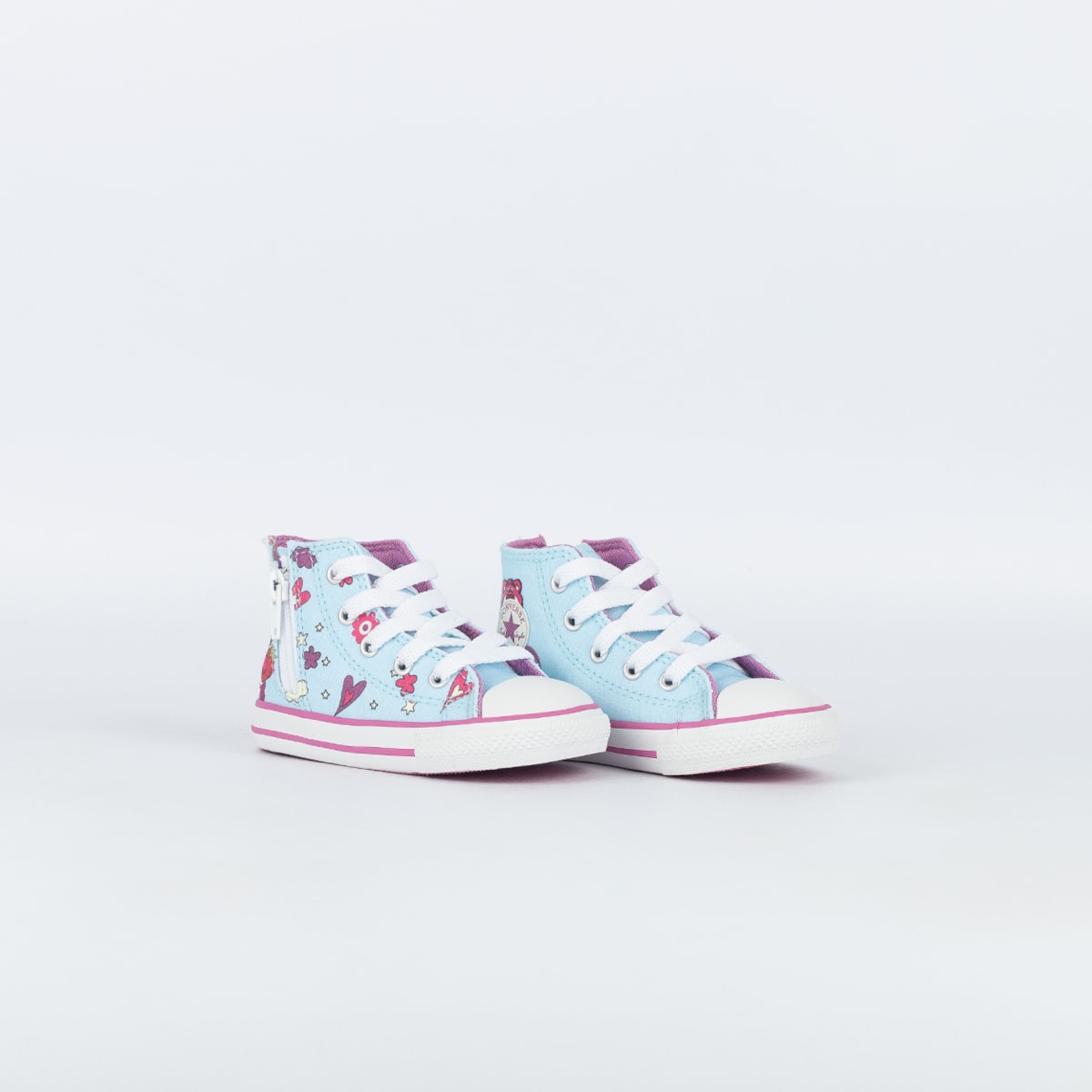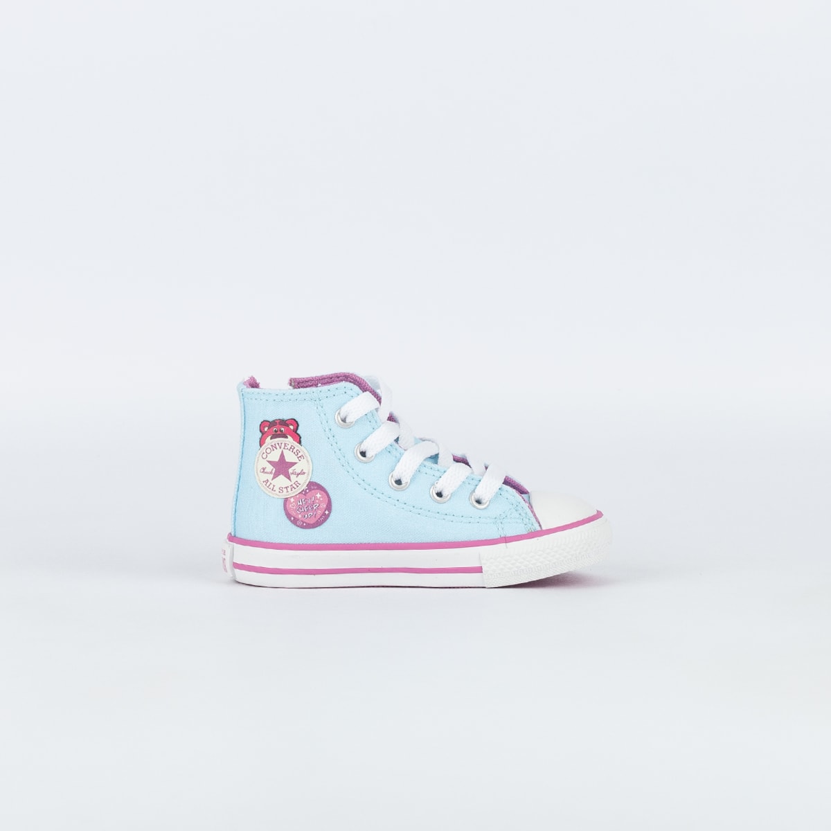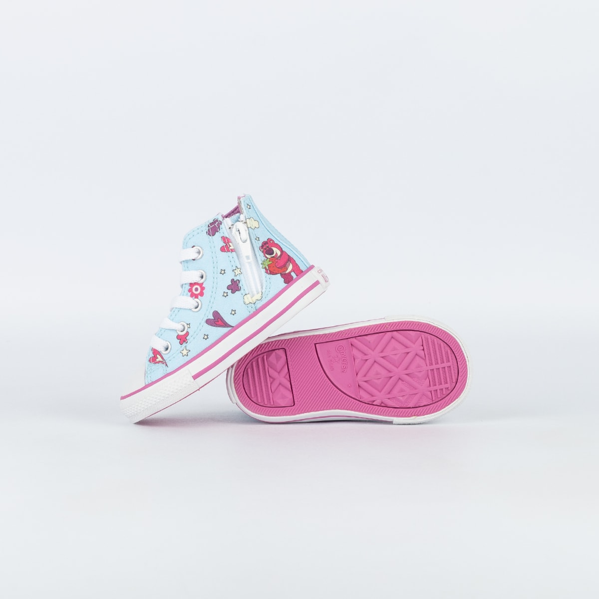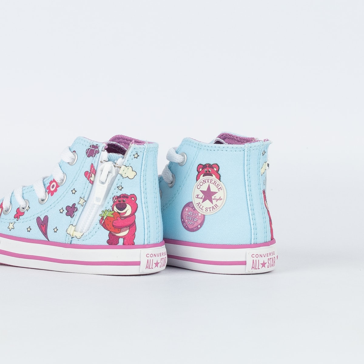 Tênis Converse Kids Chuck Taylor All Star Side Zip Hi Disney Urso Lotso Azul Claro Orquidea Fosco Branco CK15350001