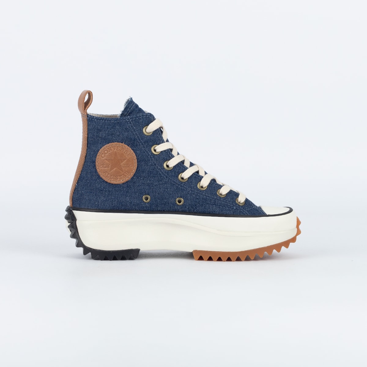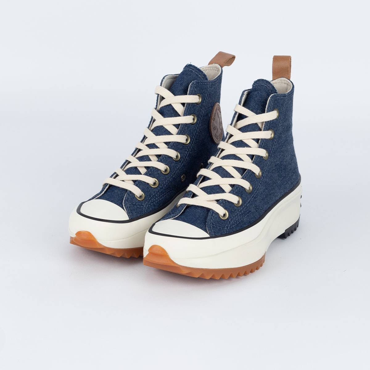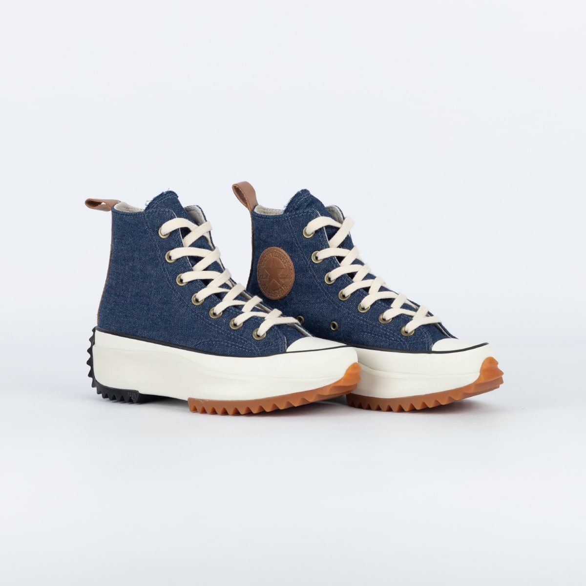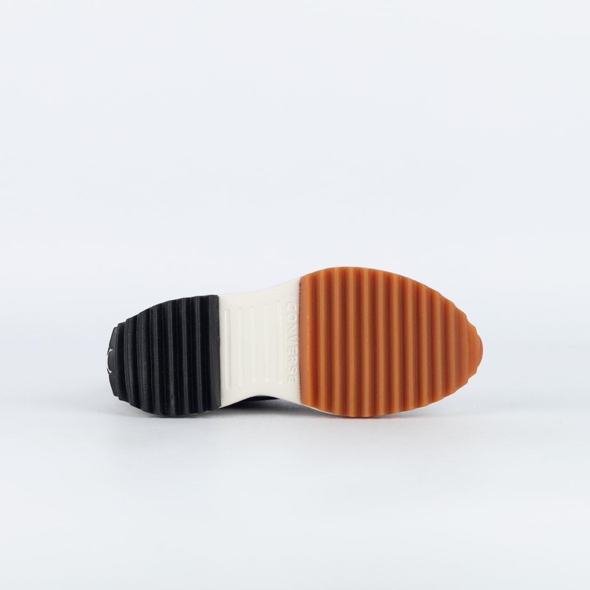 Converse Run Star Hike é construído sobre uma plataforma robusta com solado bicolor com costuras duplas. O modelo confeccionado em