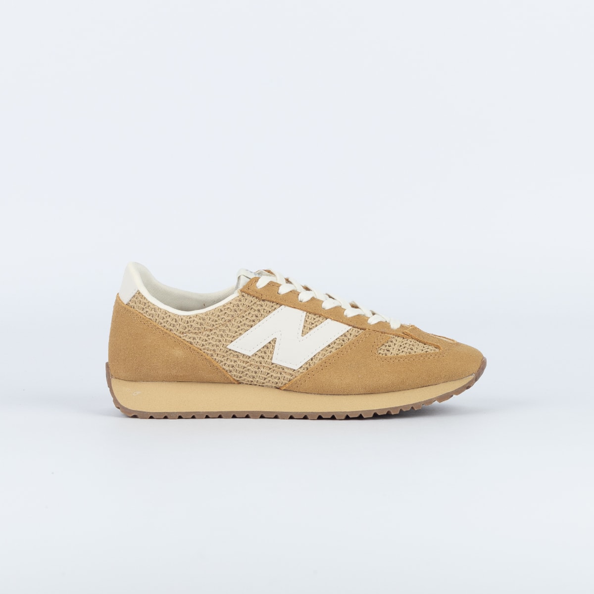 Sobre: O tênis New Balance 471 resgata a herança do running dos anos 70 em uma proposta atualizada para o cotidiano. O modelo revisita ícones daquela década, como o perfil baixo e sofisticado, a entressola em EVA em formato de cunha e o solado em padrão espinha de peixe. A construção em materiais premium acrescenta um apelo contemporâneo ao design e reforça a identidade singular do modelo.