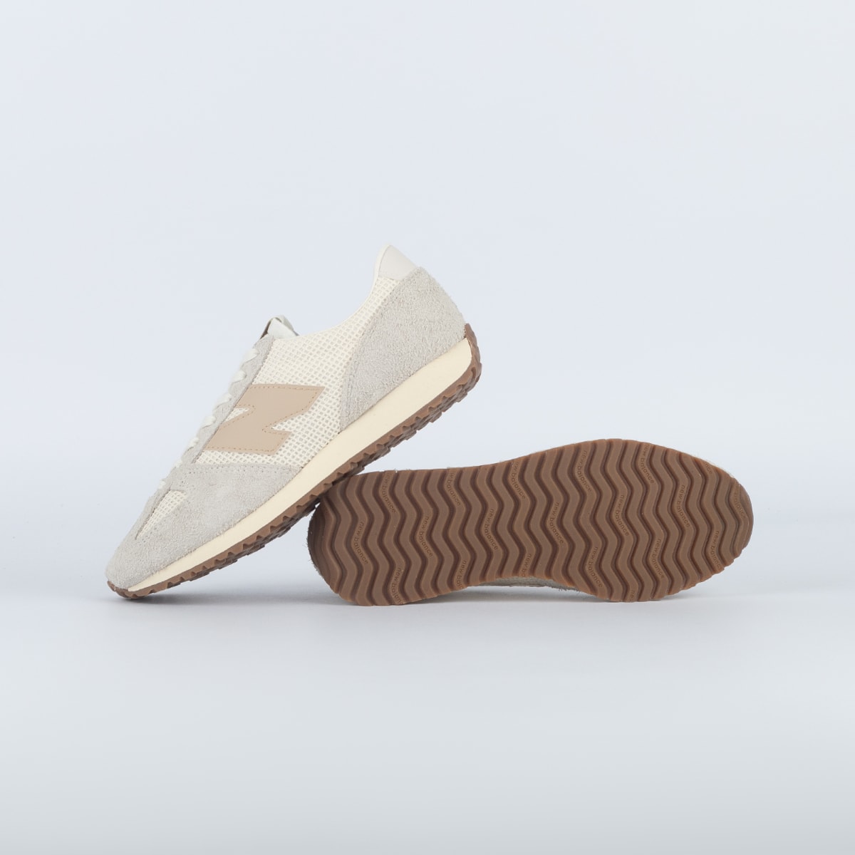 running dos anos 70 em uma proposta atualizada para o cotidiano. O modelo revisita ícones daquela década, como o perfil baixo e sofisticado, a entressola em EVA em formato de cunha e o solado em padrão espinha de peixe. A construção em materiais premium acrescenta um apelo contemporâneo ao design e reforça a identidade singular do modelo.