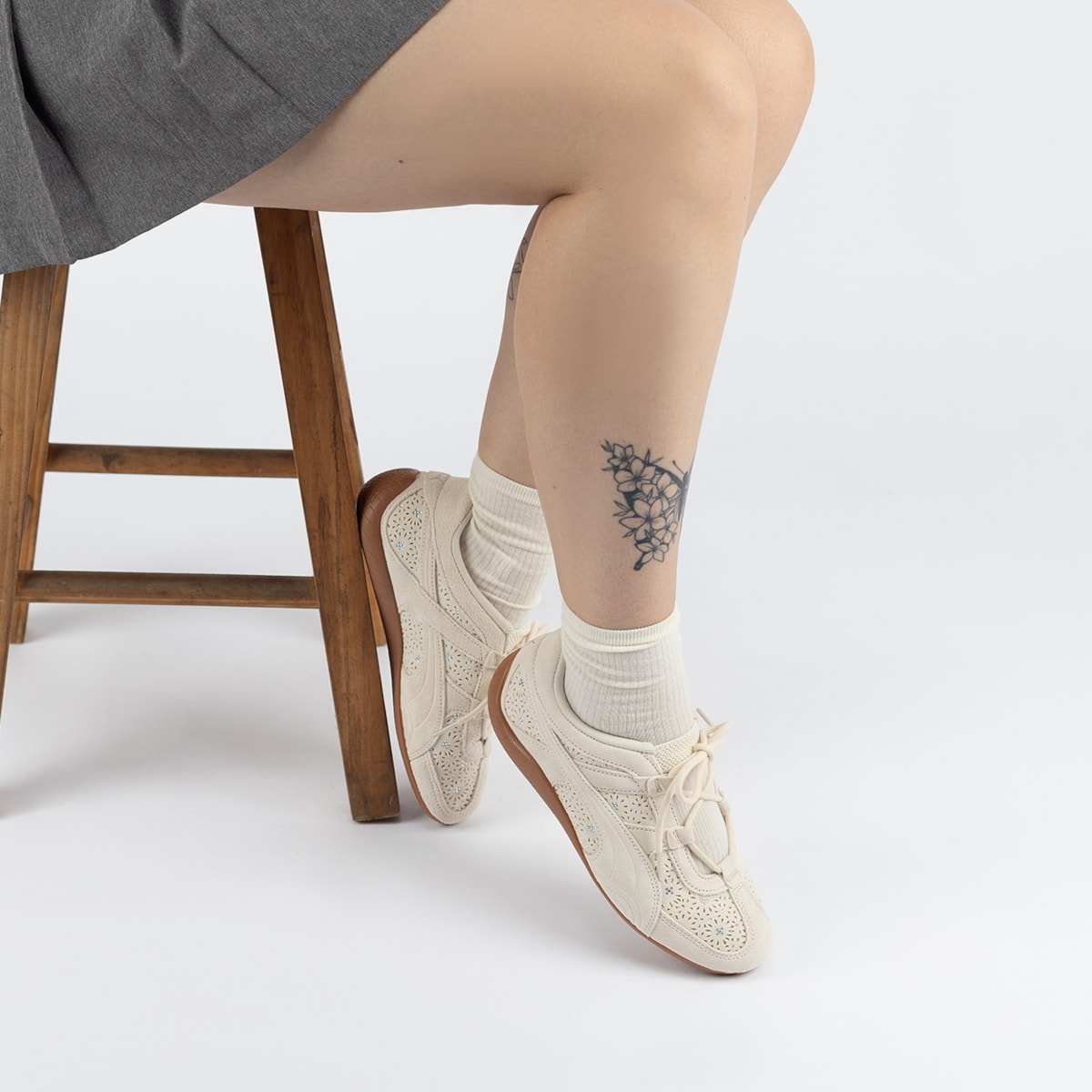 Sobre: Direto do universo do automobilismo para o streetwear contemporâneo, o Puma Speedcat Go Bejewelled traduz velocidade e atitude em uma silhueta marcante. Inspirado nos icônicos calçados usados nas pistas de Formula 1, o modelo carrega a essência racing que consagrou a linha Speedcat, agora reinterpretada com um toque fashion e sofisticado. Seu design de perfil baixo reforça a estética minimalista e aerodinâmica característica da família Speedcat, enquanto os detalhes refinados e os elementos decorativos adicionam personalidade ao visual. O cabedal em couro camurça traz uma construção leve e estruturada, com recortes vazados em padrão floral e aplicação de pedrarias que enriquecem a textura e destacam o acabamento do modelo, enquanto a sola de borracha garante aderência e conforto para acompanhar a rotina urbana. Moderno e cheio de identidade, o Speedcat Go Bejewelled leva a energia das pistas para as ruas.