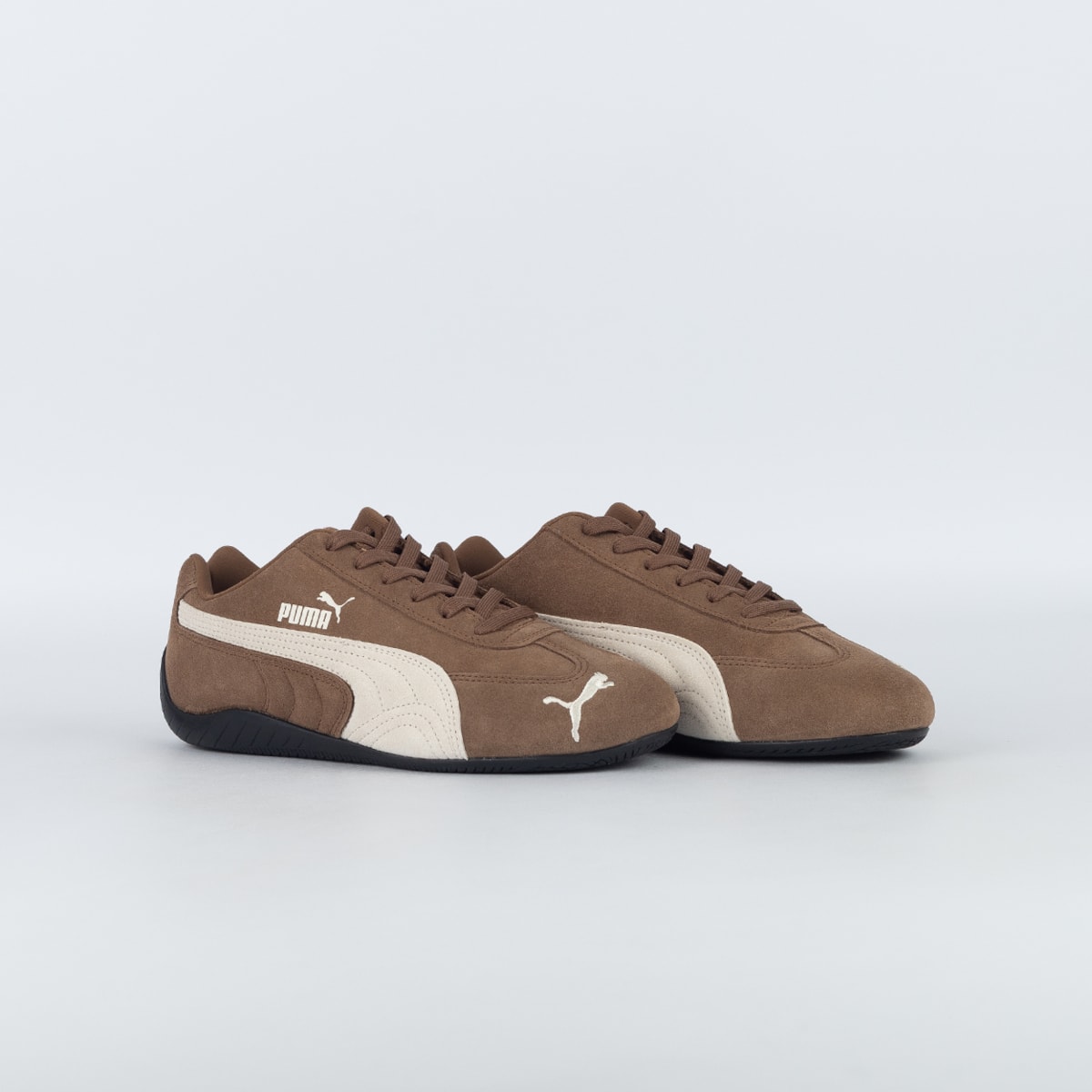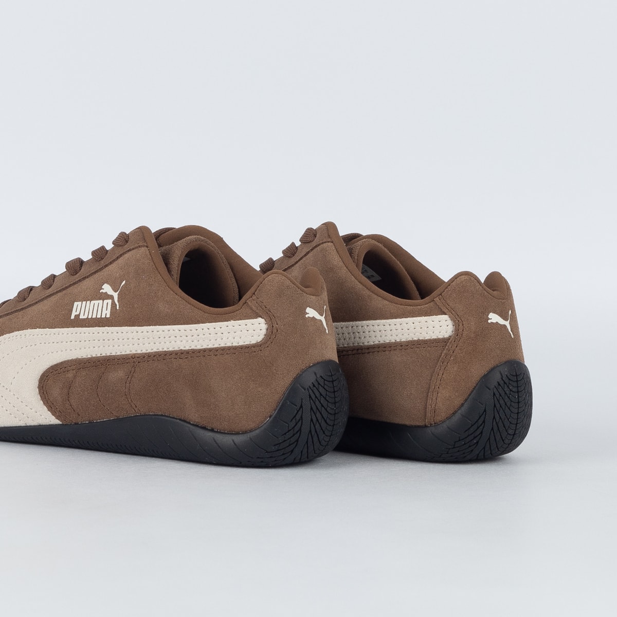 Puma Speedcat OG é um sneaker icônico inspirado nos tênis de corrida profissional dos anos 2000. Com silhueta slim e linhas fluidas que evocam velocidade, ele carrega na lateral o emblemático