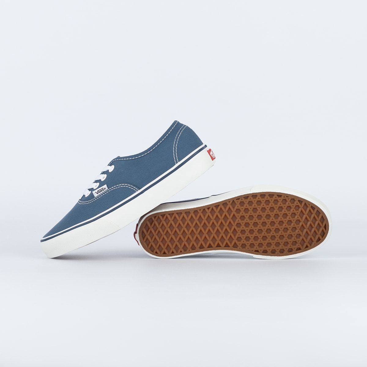 Vans. Confeccionado em tecido de algodão canvas tipo lona . Os ilhoses, cadarços, costuras e solado contrastam com o cabedal. Nas laterais, foi aplicado a clássica etiqueta