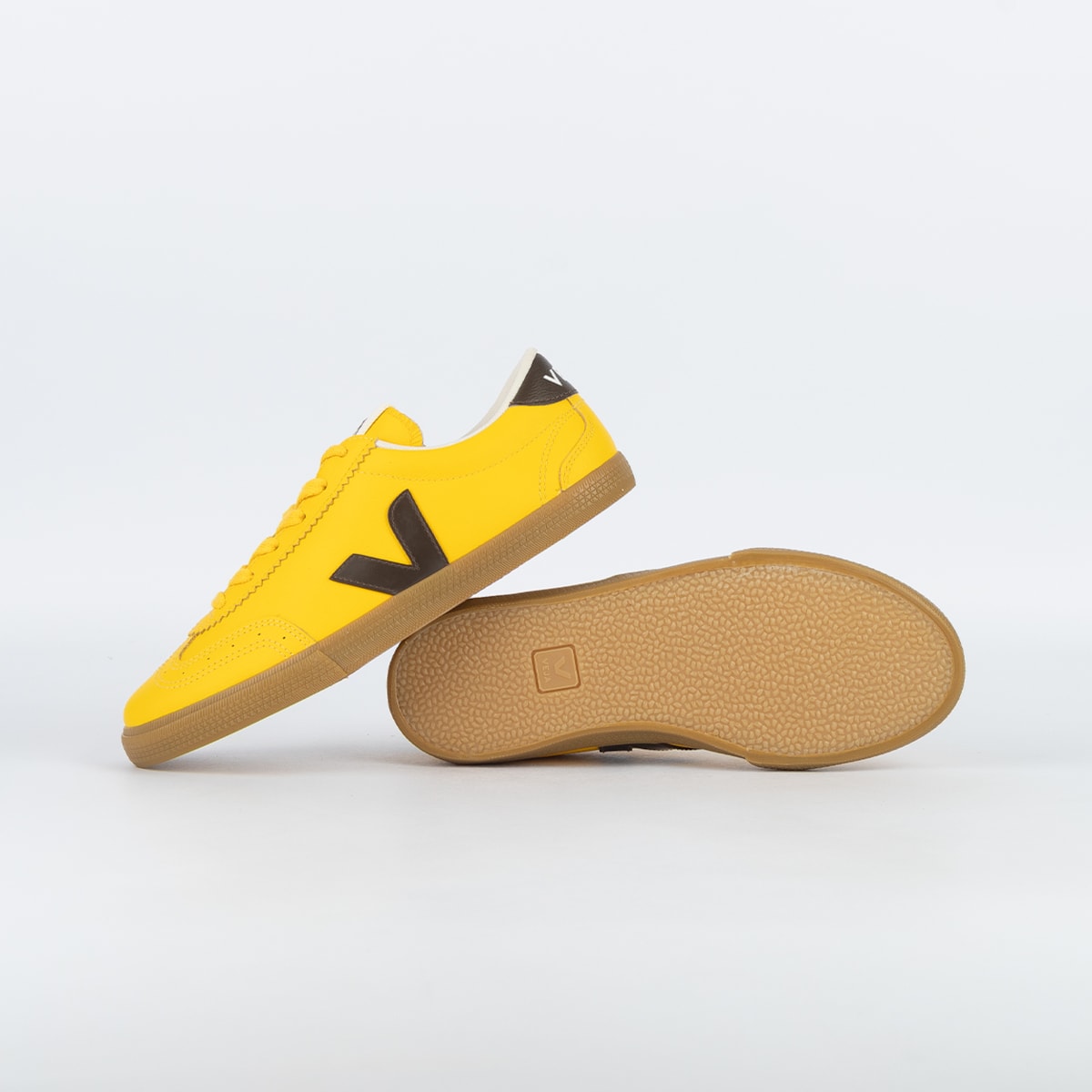 Sobre: Inspirado no vôlei brasileiro dos anos 70, o Volley foi o primeiro tênis produzido pela VEJA, em 2005, e agora está sendo reintroduzido novamente. O cabedal do tênis é confeccionado em Couro O.T. Leather. O logo VEJA é aplicado na lateral e feito a partir de uma composição que leva borracha amazônica. O forro interno é confeccionado em poliéster feito a partir de garrafas PET recicladas. A palmilha possui EVA com base biológica de cana-de-açúcar e borracha. O solado também é produzido a partir de borracha nativa da Amazônia, feita de acordo com os princípios do comércio justo e os cadarços são feitos 100% em algodão orgânico.