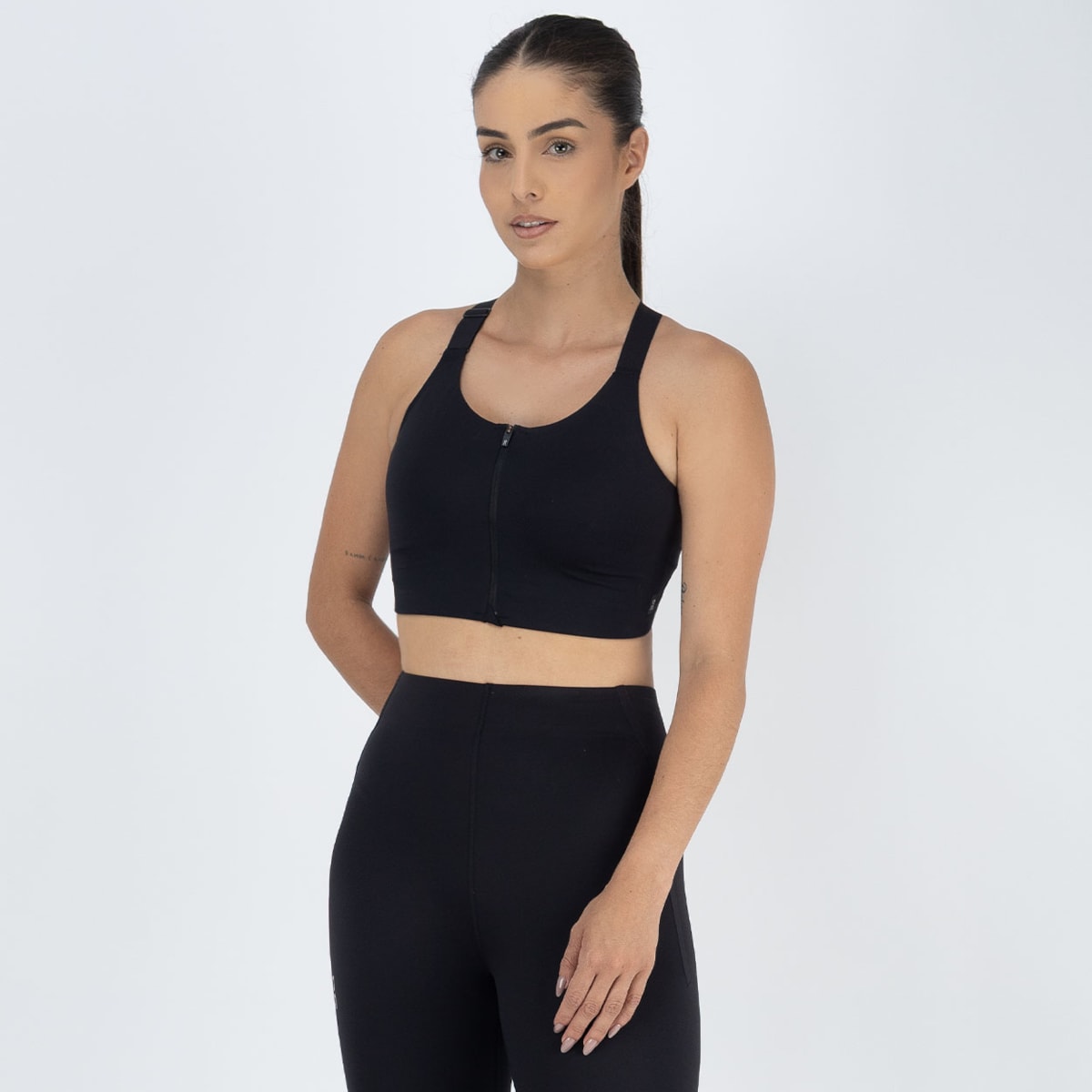 Sobre: O Top On Endurance Bra Zip foi desenvolvido para oferecer alta sustentação, conforto e desempenho. Projetado com bojos encapsulados, ele confere suporte adicional e maior estabilidade durante movimentos. Sua modelagem nadador permite amplitude de movimento, combinada com alças reguláveis que proporcionam ajuste personalizado e firme. O destaque técnico fica por conta do fecho frontal com zíper, que garante praticidade. As costuras seladas aumentam o conforto ao reduzir atritos, proporcionando sensação suave. A construção é pensada para manter o suporte, sem comprometer a mobilidade ou o conforto geral.
