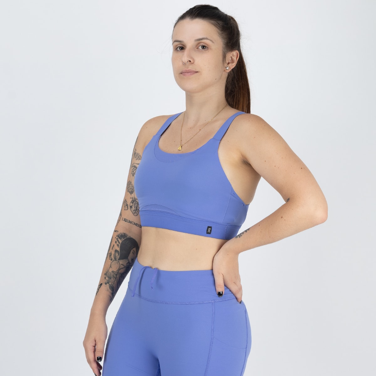 faixa elástica sob o busto oferece firmeza e sustentação, garantindo estabilidade durante movimentos rápidos. O logotipo refletivo aumenta a visibilidade, unindo performance e estilo funcional.