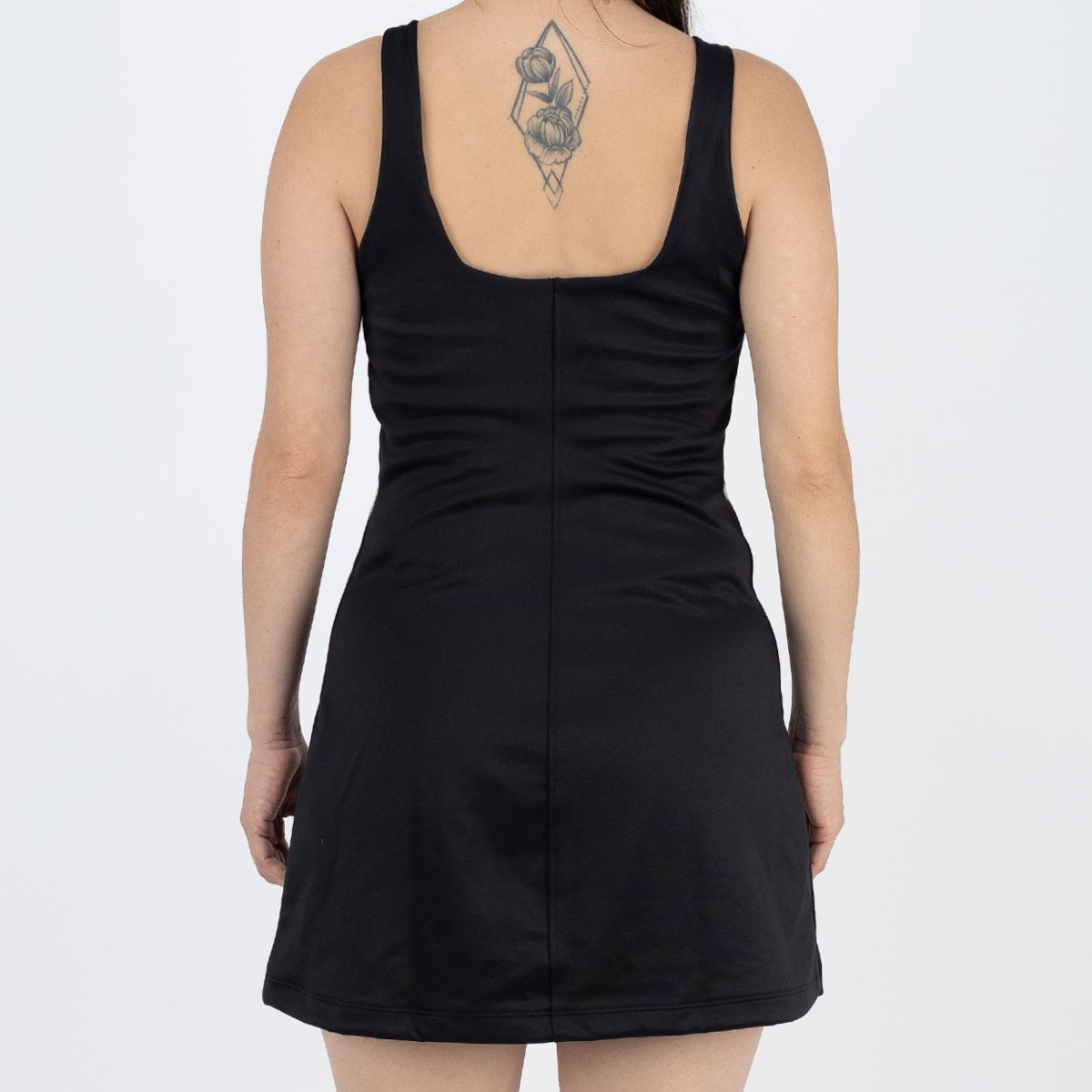 Sobre: O vestido FILA Classic possui certificados BCI e OEKO-TEX que asseguram uma produção responsável e livre de substâncias nocivas. Inspirado no Grand Turismo italiano, o modelo justo traz decote em U, recorte central nas costas com revel interno e elástico na base. O patch F-Box aparece como assinatura icônica da marca.