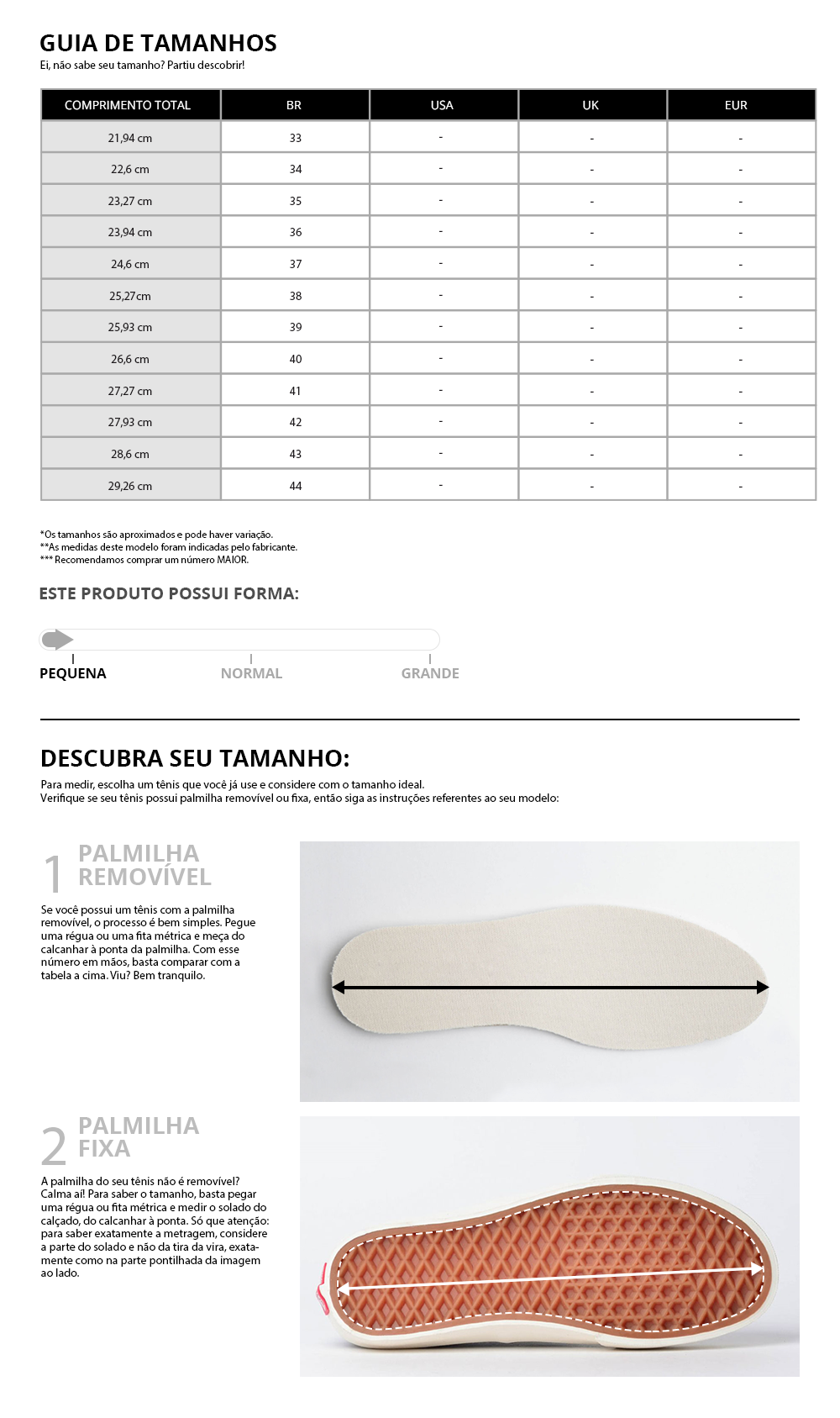 Forma: Apertada (Sugerimos comprar um número MAIOR)
